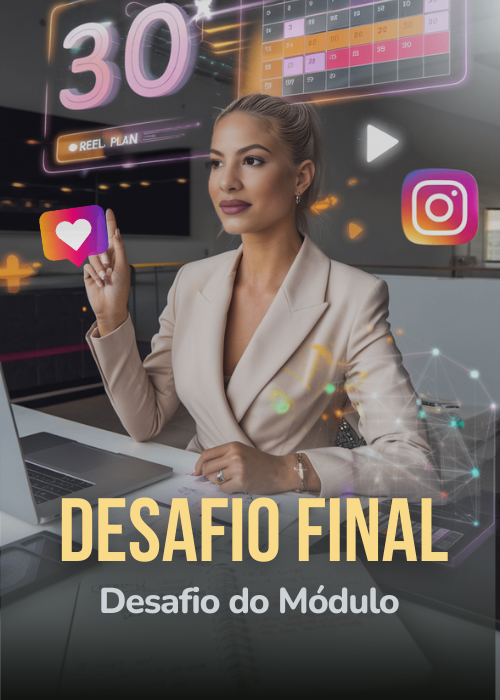 Cada módulo traz um desafio prático para você aplicar no seu Instagram e acelerar resultados.
