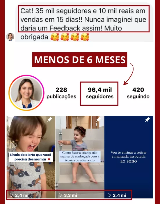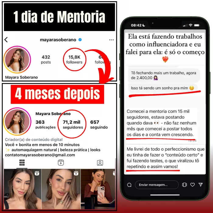 Com 4 meses na mentoria, já tinha passado dos 70 mil seguidores e conquistado parcerias com marcas que valorizam sua autenticidade e pagam pelo seu trabalho.