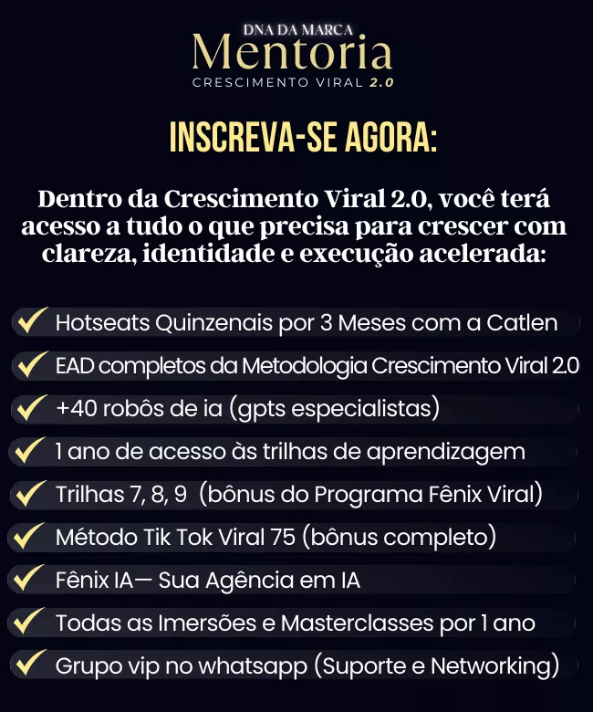 Mentoria Crescimento Viral 2.0 com o acompanhamento da Catlen Guerra