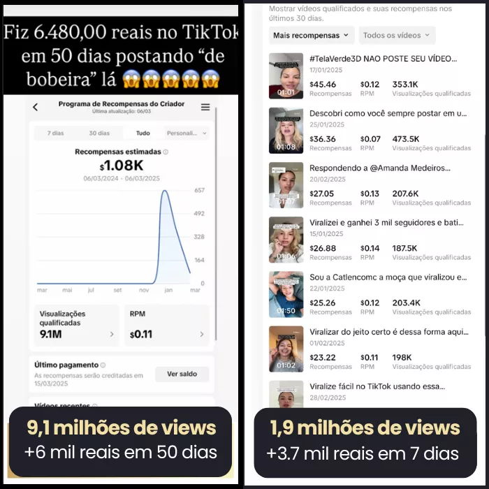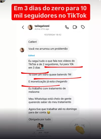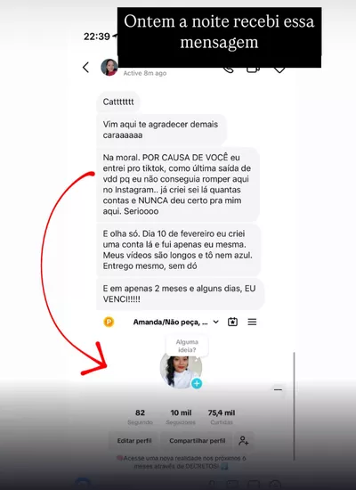 “Bati 10k esse mês. Em 9 meses no TikTok fiz o que não consegui em 4 anos no Instagram.”