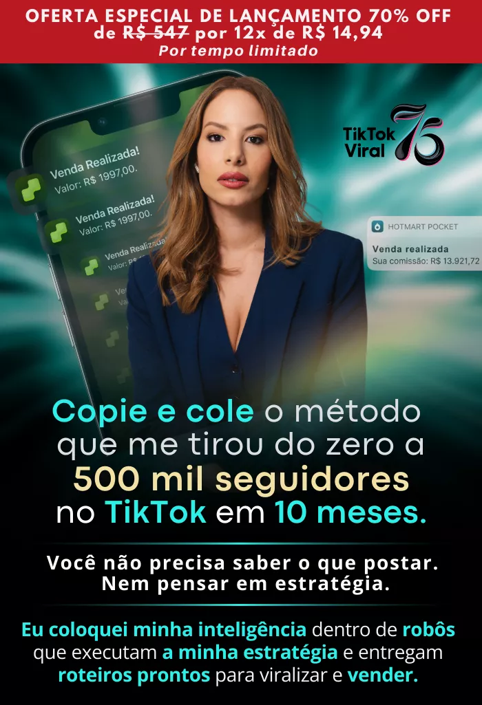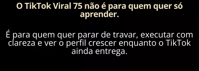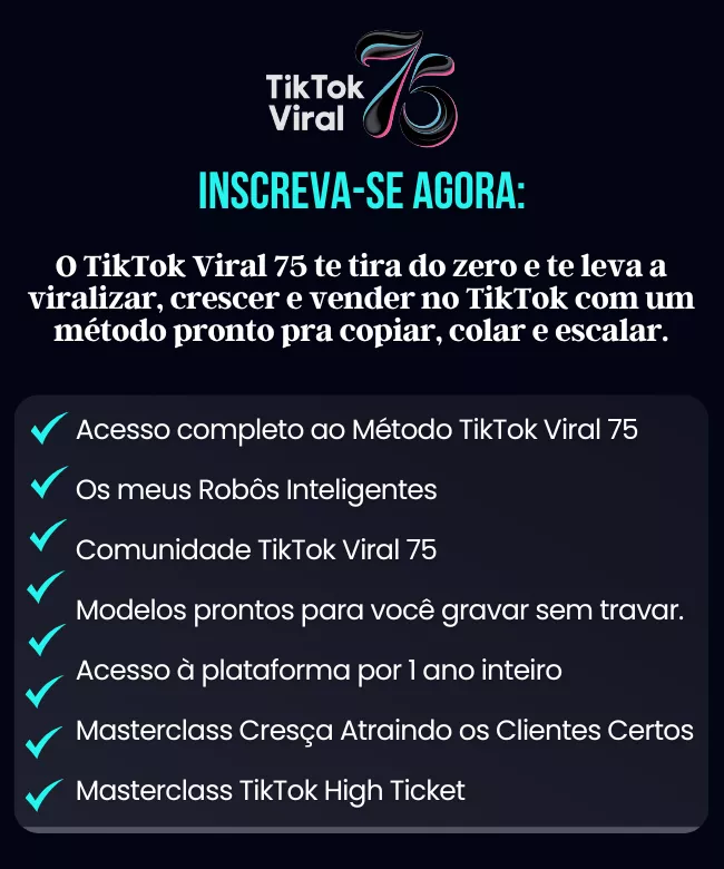 O TikTok Viral 75 já entrega o método completo para você viralizar, crescer e monetizar.