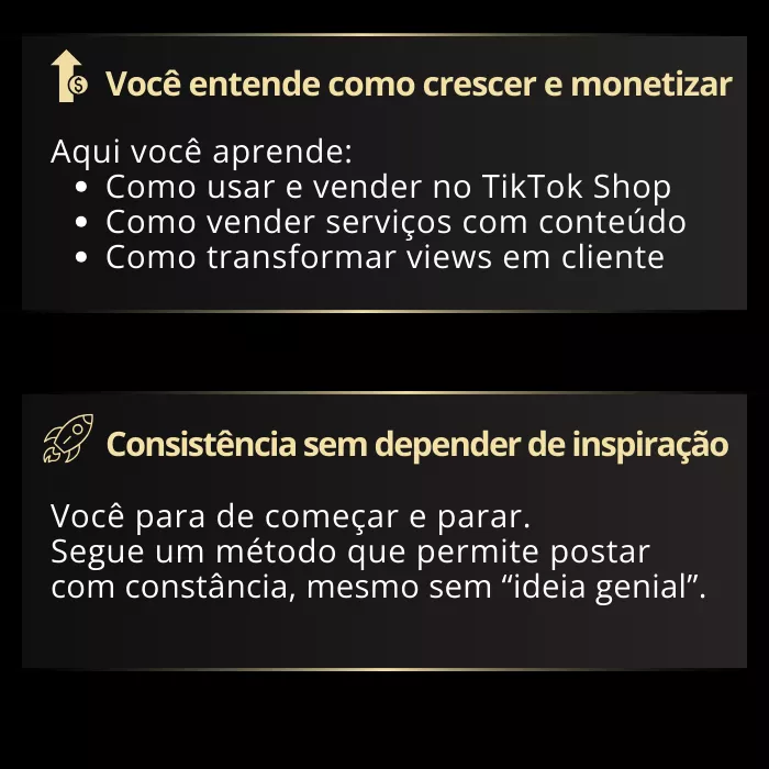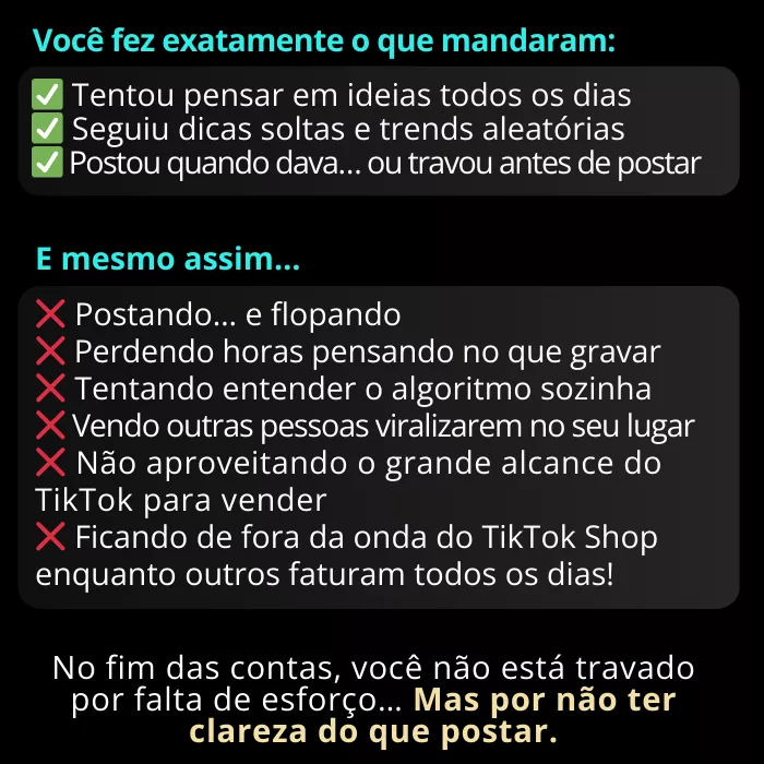 Você copia, aplica e executa o que já funciona no TikTok.