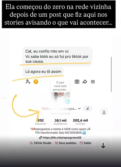 “Entrei no TikTok por sua causa. Aqui no Instagram nunca dava certo.”