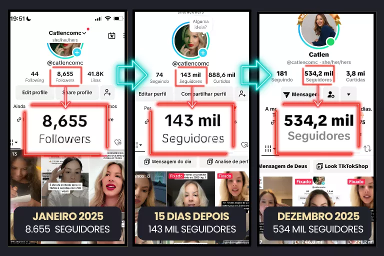 Com sua expertise, criou uma conta do zero no Instagram e alcançou 157 mil seguidores em apenas 120 dias. No TikTok, seu crescimento foi ainda mais impressionante: de 8 mil para 143 mil seguidores em apenas 15 dias. Seu método para viralizar e monetizar no digital transformou a jornada de milhares de alunos.